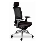 Base de aluminio de 27″. Mecanismo synchro dos palancas (ajuste de altura y ajuste de reclinamiento), con pistón cromado rebasador de base.